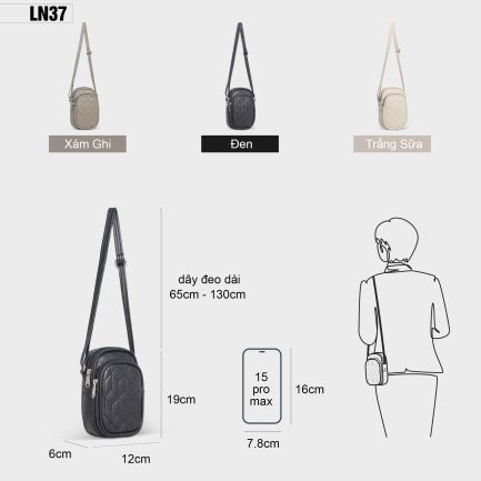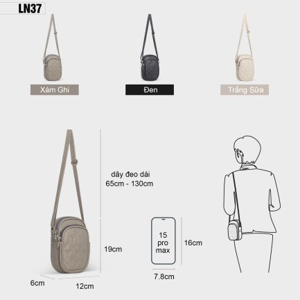 Giá gốc là: 420,000₫.239,000₫Giá hiện tại là: 239,000₫.Túi đeo chéo đựng điện thoại dáng ngang from hộp LN39 màu xám ghi
