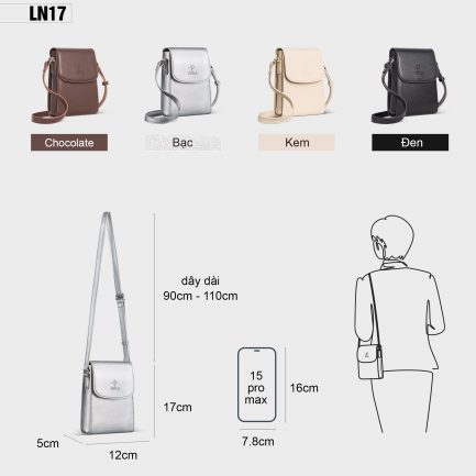 Túi đeo chéo da nữ thiết kế dây rút Petla LN10 màu kem
