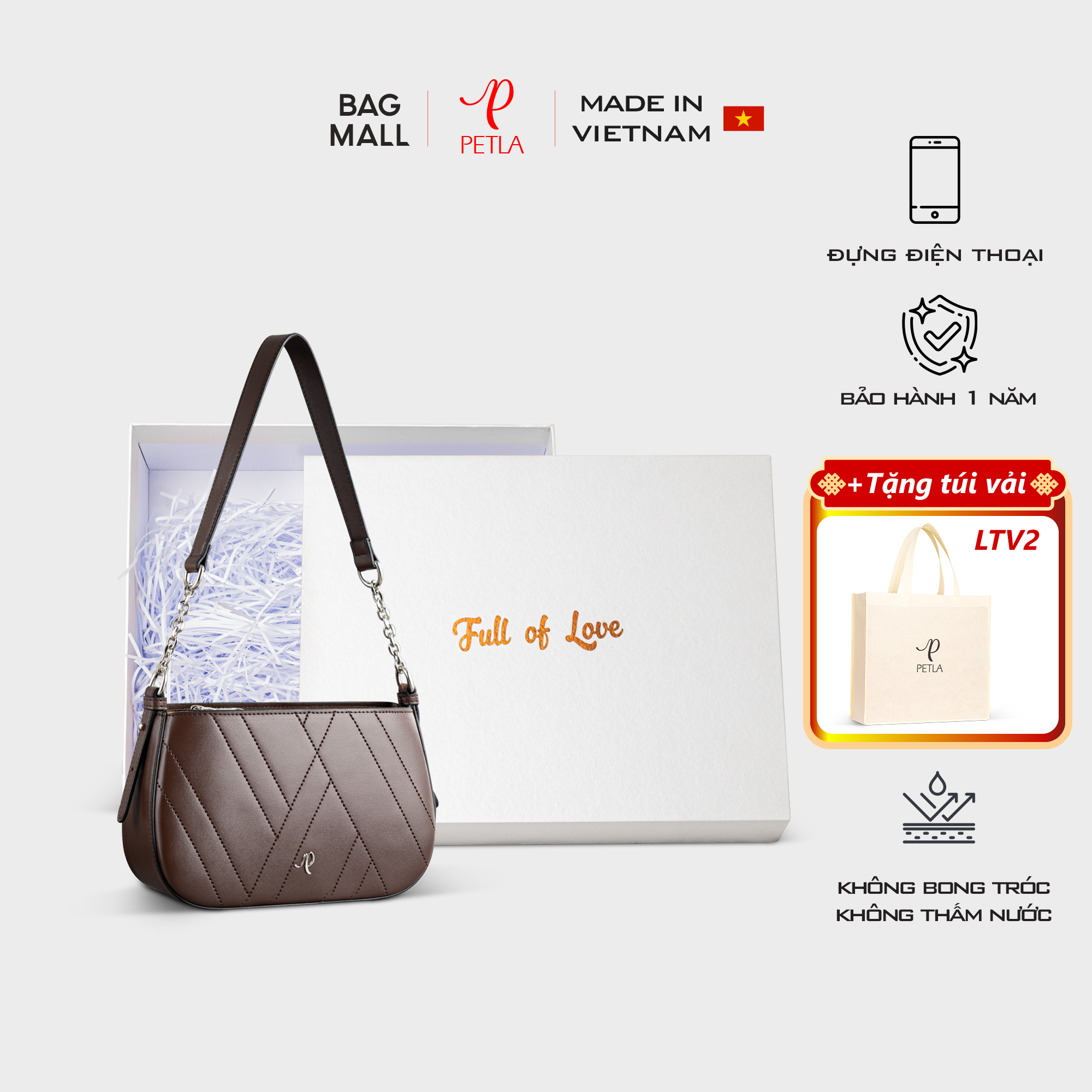 Hãy là người đầu tiên nhận xét “Mẫu túi nữ đeo vai from hộp PETLA LN22 màu nâu”