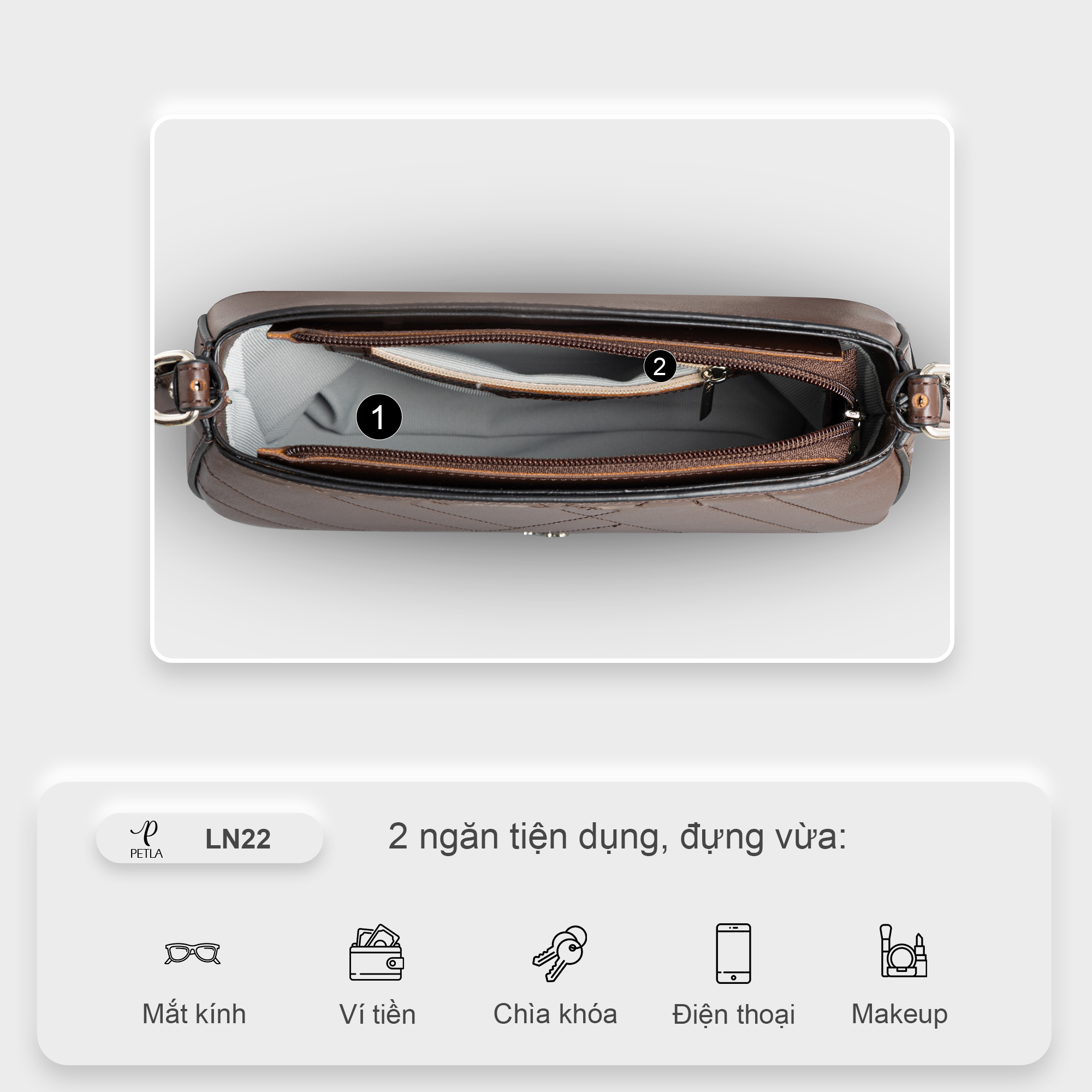 Mẫu túi nữ đeo vai from hộp PETLA LN22 màu nâu