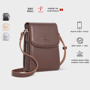 Túi đeo chéo nữ mini đựng điện thoại Petla LN17 mang phong cách đơn giản nhưng không kém phần thời trang. Túi đeo chéo PETLA với form dáng hình chữ nhật đứng gọn gàng, mặt trước được điểm xuyết bằng logo dập chìm PETLA nhẹ nhàng nhưng đầy tinh tế. Nắp gập đóng mở tiện lợi giúp bảo vệ đồ dùng an toàn mà vẫn nhanh chóng khi cần lấy ra. Dây đeo nhỏ, có thể điều chỉnh độ dài linh hoạt, kết hợp với khoen kim loại chắc chắn, tạo nên tổng thể hài hòa, nhẹ nhàng nhưng vẫn rất chắc tay khi đeo, phù hợp với