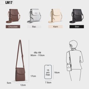 Túi đeo chéo nữ mini đựng điện thoại Petla LN17 màu đen