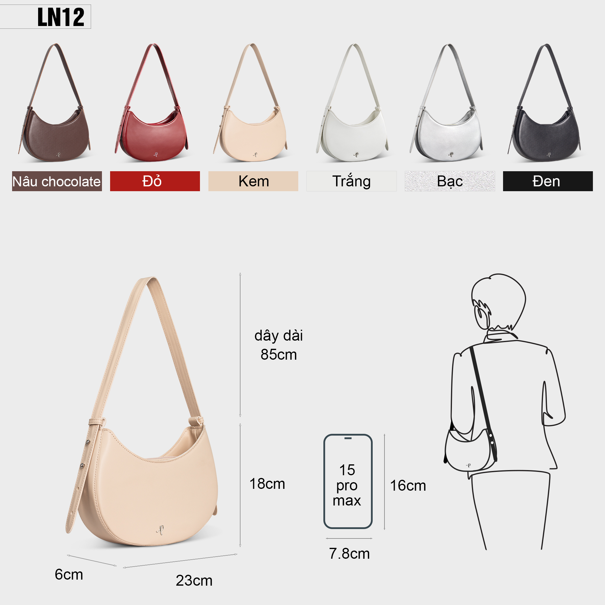 Hãy là người đầu tiên nhận xét “Túi xách nữ đeo vai hình bán nguyệt Petla LN12 màu kem from hộp”
