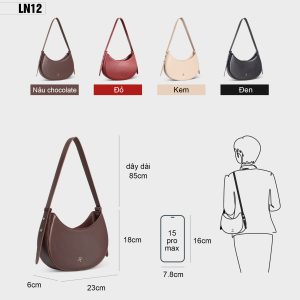 Túi xách nữ đeo vai LN12 từ thương hiệu PETLA mang thiết kế hình bán nguyệt thời thượng, giúp phái đẹp dễ dàng kết hợp với nhiều phong cách khác nhau. Với kích thước nhỏ gọn nhưng vẫn đủ sức chứa các vật dụng cần thiết, LN12 là lựa chọn hoàn hảo cho những cô nàng yêu thích sự tiện lợi và tinh tế.